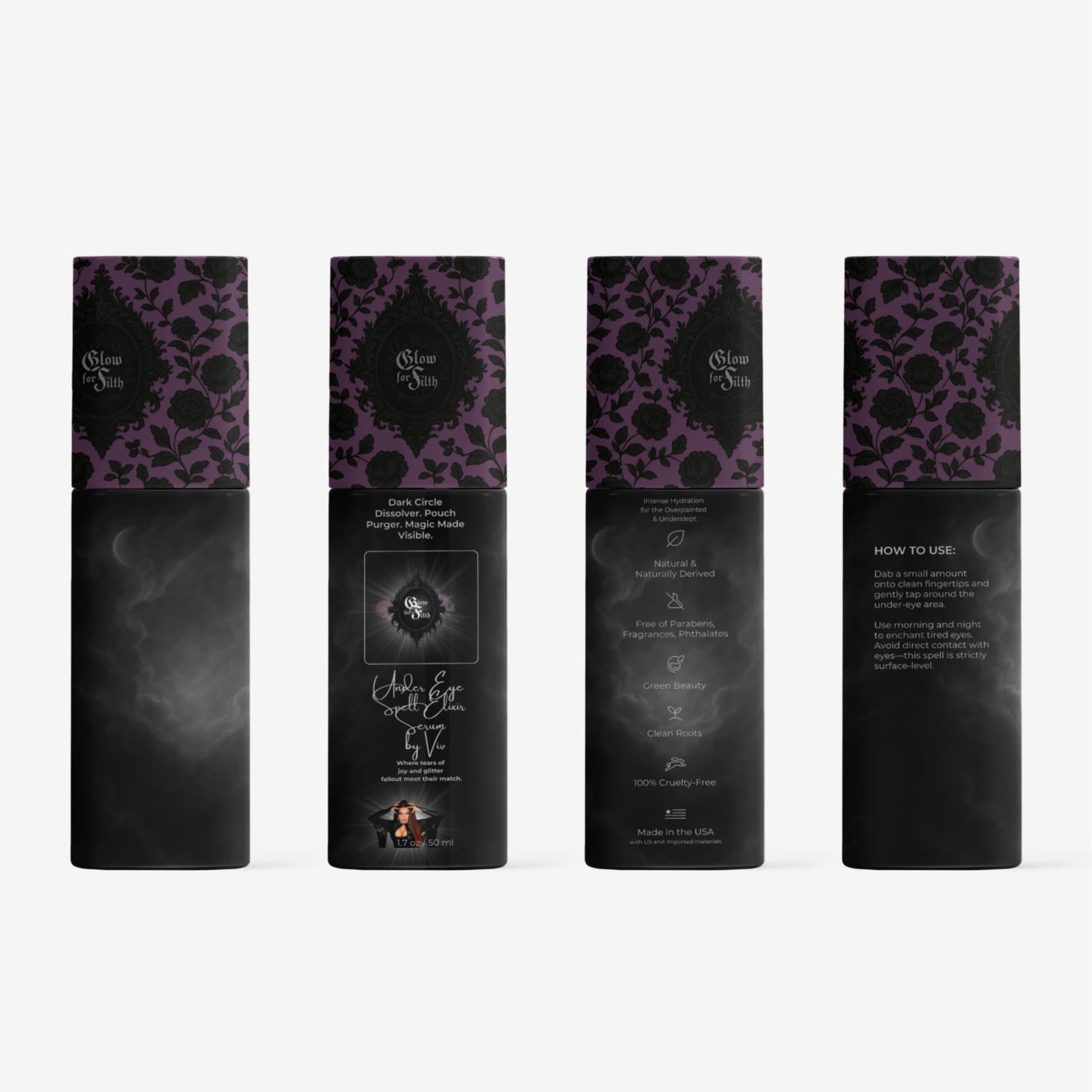 Begin with freshly cleansed skin around your eyes. Dispense a spellbinding drop onto your fingertips and gently warm it until it turns creamy. With love (or vengeance), tap and lightly massage the serum into the skin around the eye area using upward strokes.